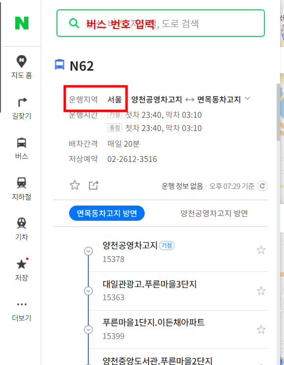버스 면허 지역이 서울 인 경우에만 기후 동행 카드 사용이 가능하기 때문에 자신이 자주 타는 버스의 면허 지역을 아래와 같이 알아 보시기 바랍니다.