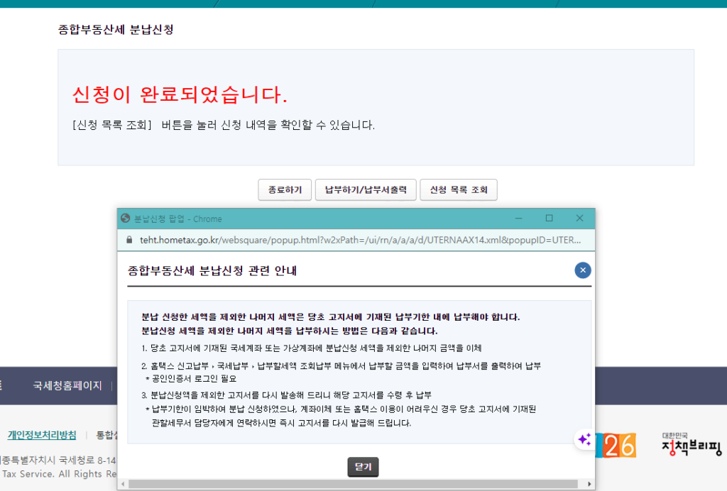 종합 부동산 세금 분납 신청 하기